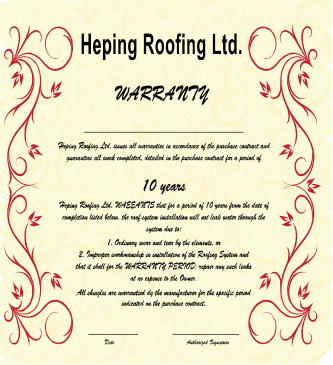 The warranty period depends on the roofing materials chosen by the customer and specified in the roofing estimate prior signing of the contract.